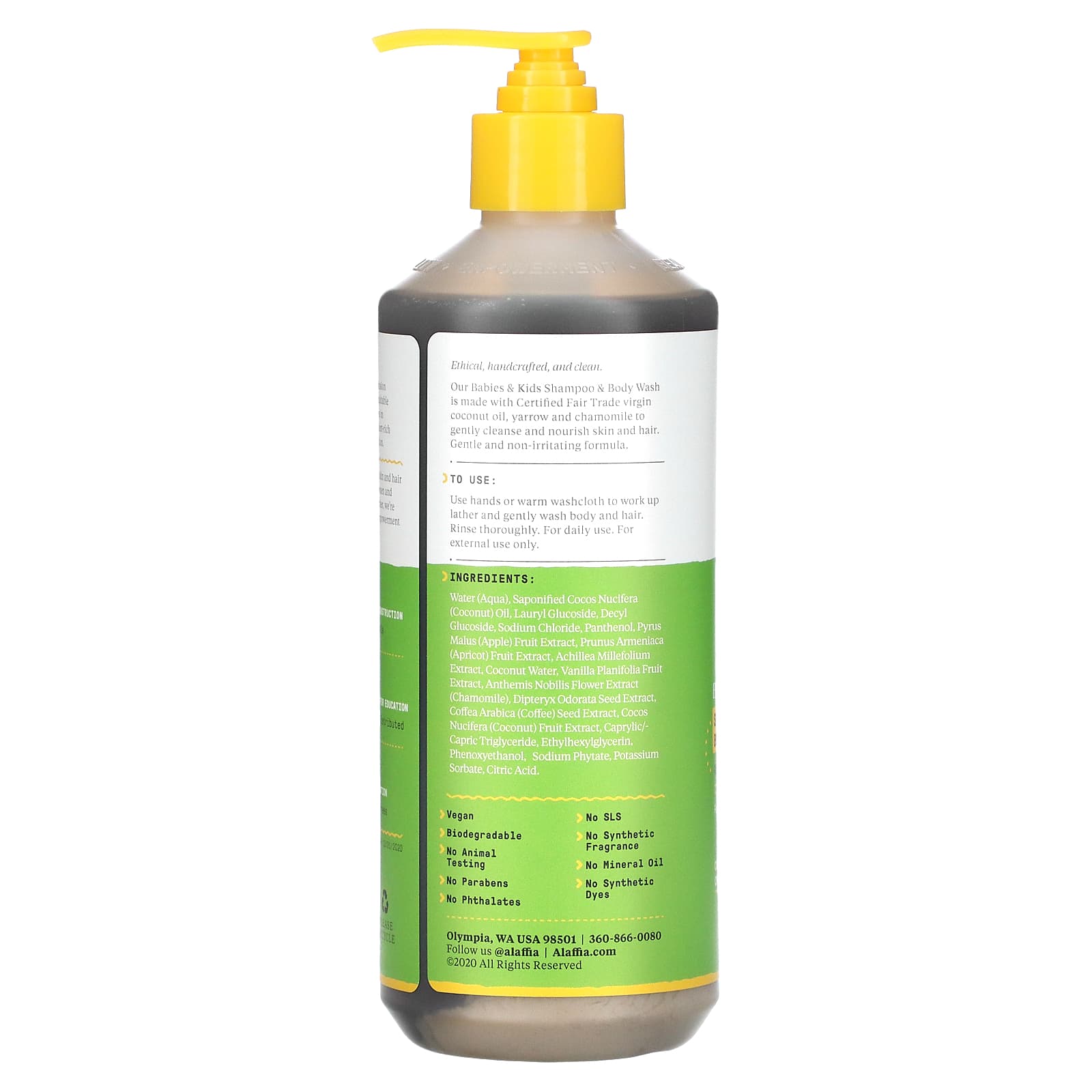 Alaffia Para Bebês e Crianças Shampoo e Sabonete Líquido Coco e Camomila 473 ml (16 fl oz)