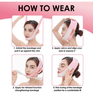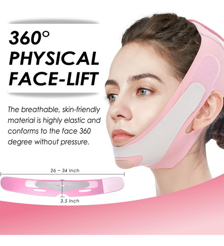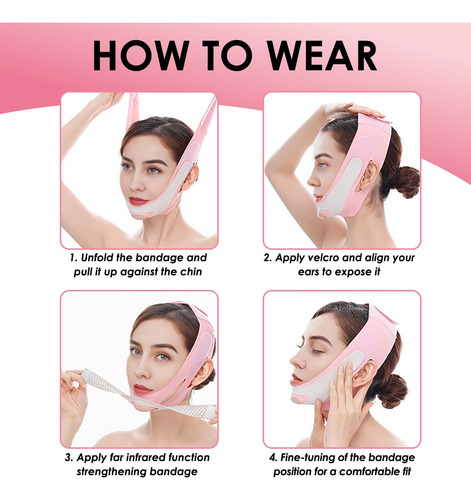 Faixa facial de queixo para cima em forma de V. Ele pode ser usado de forma fácil e eficaz em casa. Após 2-3 meses de uso consistente, você poderá sentir resultados visíveis. – Alça de queixo eficaz: a alça de queixo em linha V foi projetada para queixo duplo e pele flácida. – Adequada para todos os formatos de rosto: o design de corte 3D pode caber em todos os tipos de estrutura facial. O design dos orifícios laterais e do orifício médio faz com que a alça de queixo duplo se ajuste melhor ao rosto, melhora o efeito lifting e torna as orelhas e o queixo mais confortáveis para uso diário. – Laço e gancho ajustáveis: o comprimento do redutor de queixo duplo é de 26 polegadas e pode ser esticado até 34 polegadas, o que pode ser ajustado para apertar o uso e levantar com laço e gancho. (consulte a página de detalhes ou as instruções de uso). – Tecidos de qualidade: a faixa de levantamento de rosto e queixo é feita de 95% náilon flexível de alta qualidade e 5% elastano, não é alergênica, de alta elasticidade e reutilizável. – Lavável e reutilizável: a alça de lifting facial pode ser lavada à mão em temperaturas de água entre 55 e 90 e pode ser reutilizada após secagem à sombra.