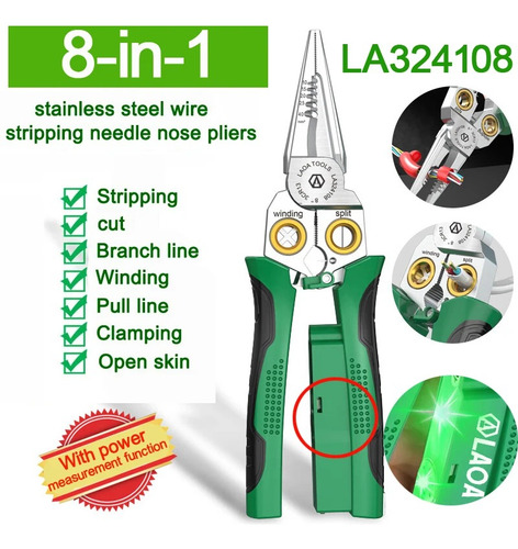 *LA324108, pinças para eletrocomputador 8 em 1, elétrica permanente/linha de descascamento/cisalhamento/prensagem/divisão/fiação/retenção de clipe.
