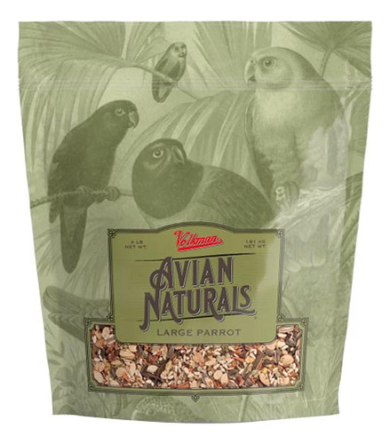 O Avian Naturals Large Parrot é uma mistura de sementes, grãos, vegetais e nozes 100% naturais, formulada para anzóis grandes. Essa mistura diversificada de sabores e texturas é livre de cores, sabores e conservantes artificiais, sem adição de vitaminas. Disponível em sacos de 4 libras. A mistura de sementes, grãos, vegetais e nozes 100% naturais. Formulada para grandes quantidades, a mistura de sabores e texturas da HookBillsDivers é livre de cores, sabores e conservantes artificiais, sem adição de vitaminas