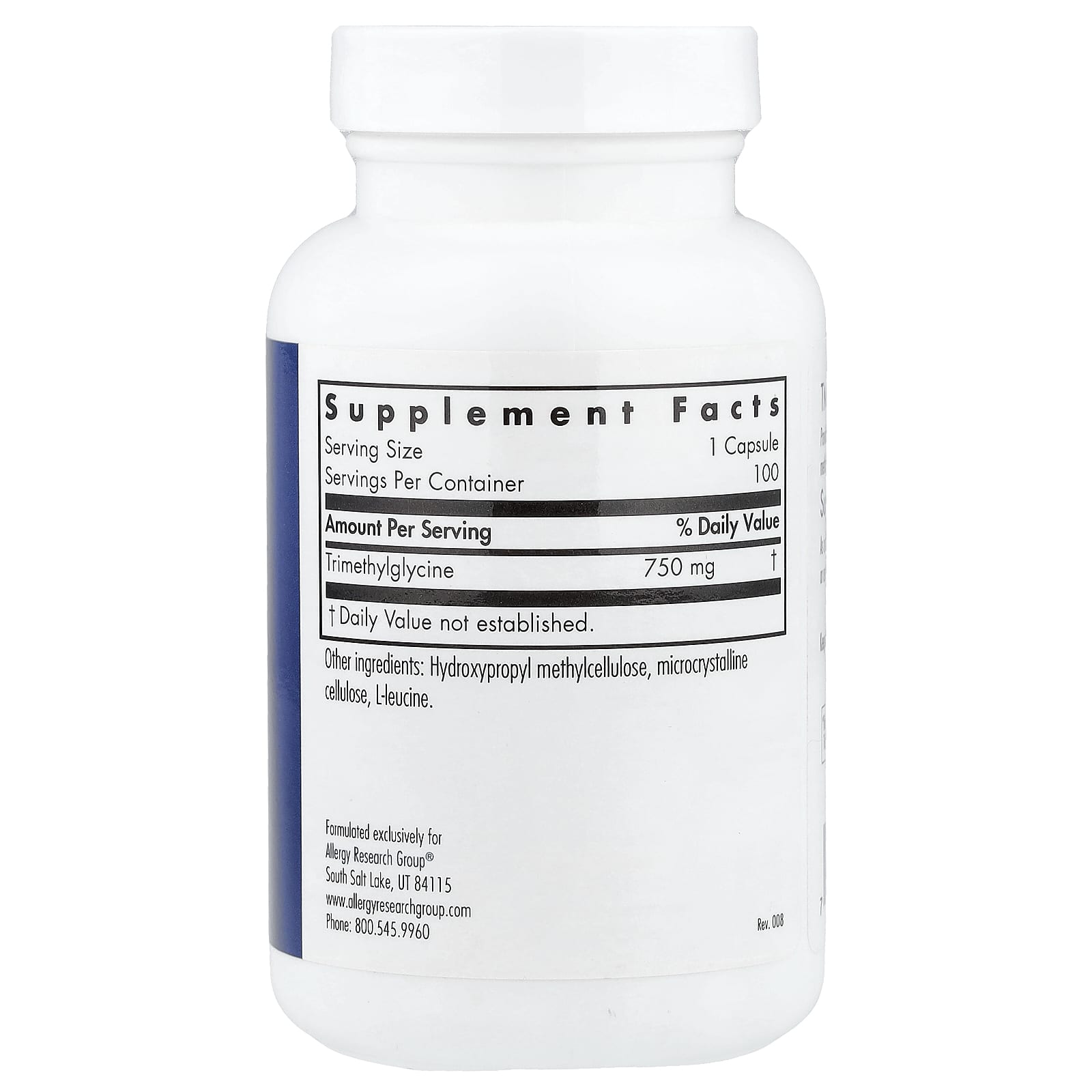 Allergy Research Group TMG 100 Cápsulas Vegetarianas (750 mg por Cápsula) – Allergy Research Group Suplementos Aminoácidos.