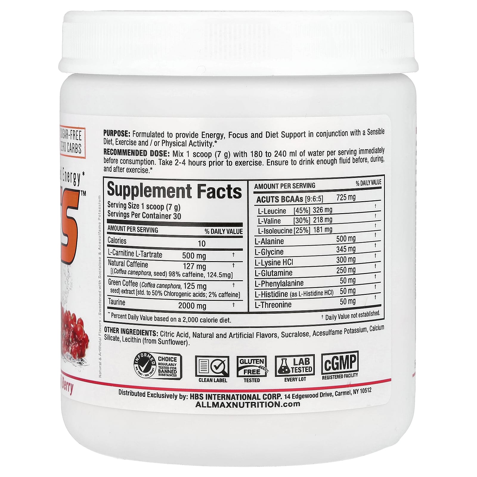 ALLMAX ACUTS™ Energia Carregada de Aminoácidos Goji Berry 210 g (74 oz) – ALLMAX Nutrição Esportiva Suplementos Pré-treino Pré-treino estimulante Cafeína Suplementos Aminoácidos Misturas de aminoácidos.