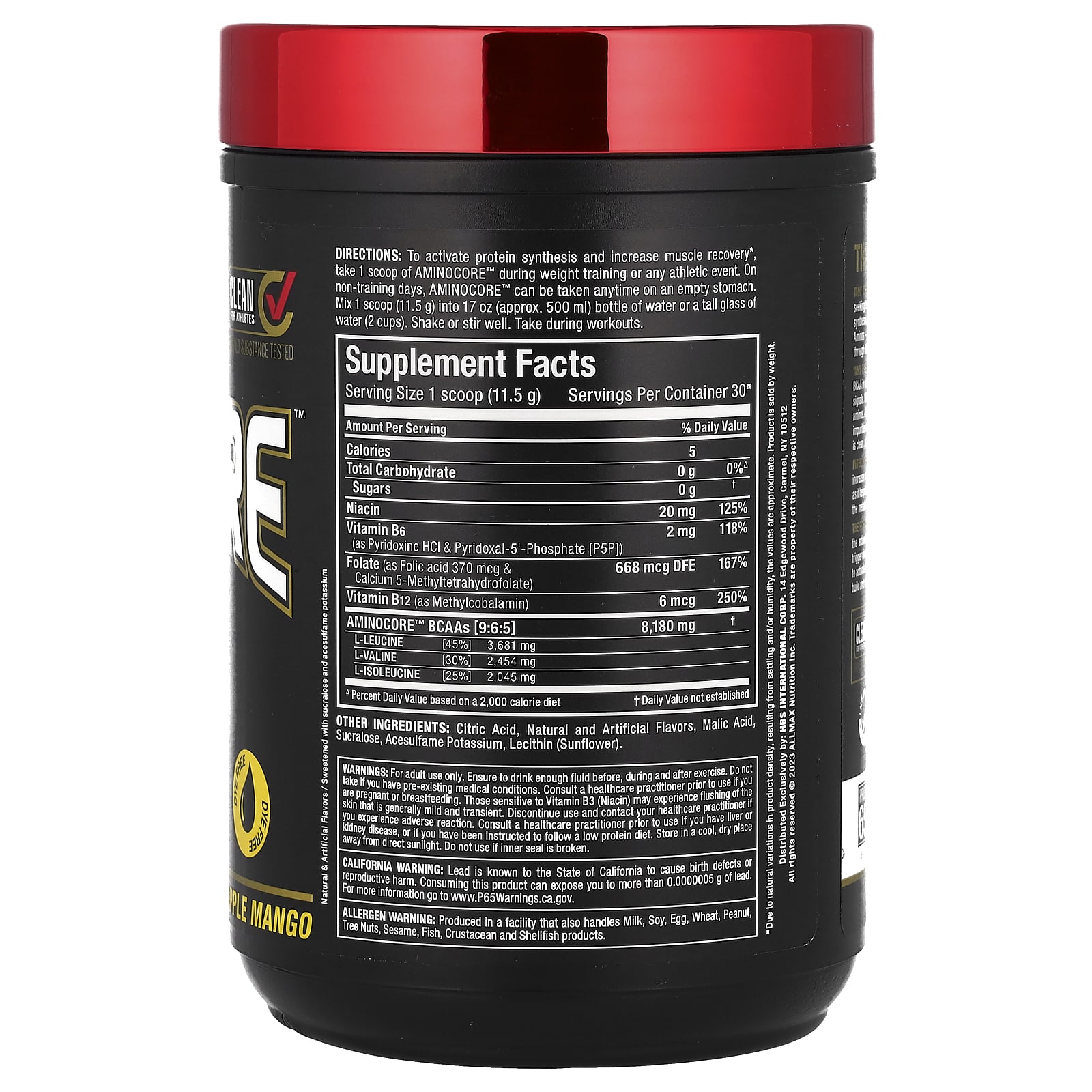 ALLMAX BCAA AMINOCORE™ Abacaxi e Manga 345 g (076 lb) – ALLMAX Suplementos Aminoácidos BCAA.