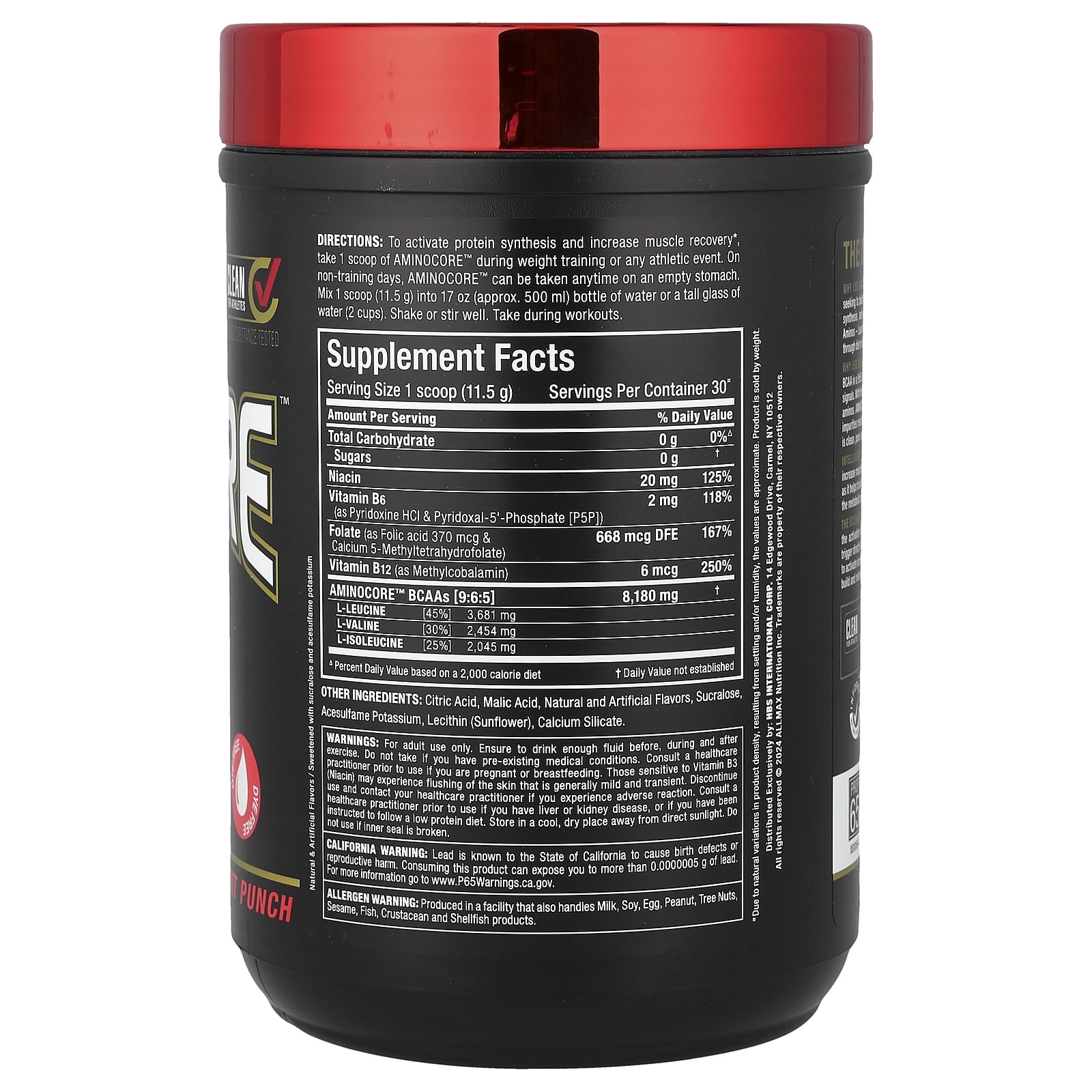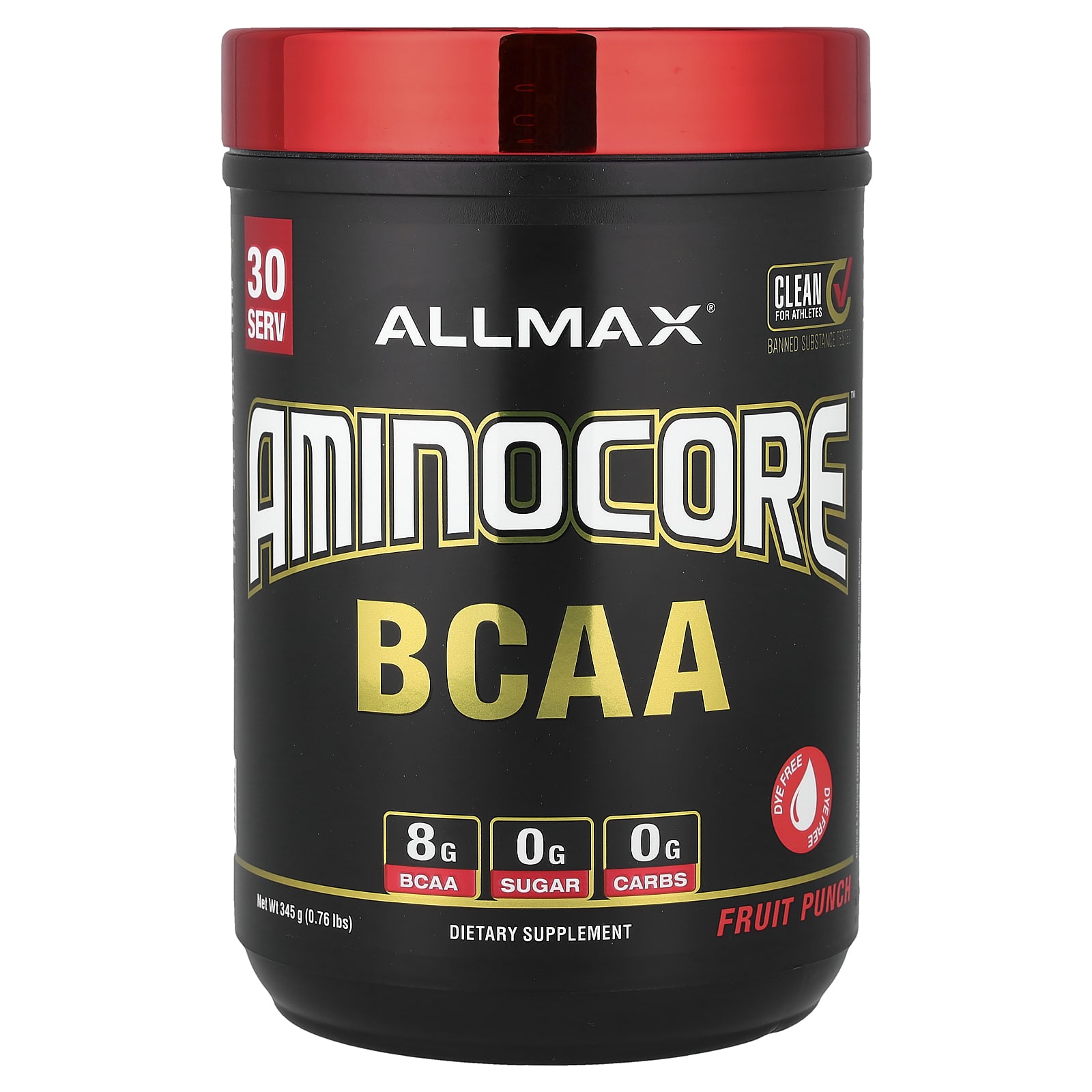 ALLMAX BCAA AMINOCORE™ Ponche de Frutas 345 g (076 lb) – ALLMAX Suplementos Aminoácidos BCAA.