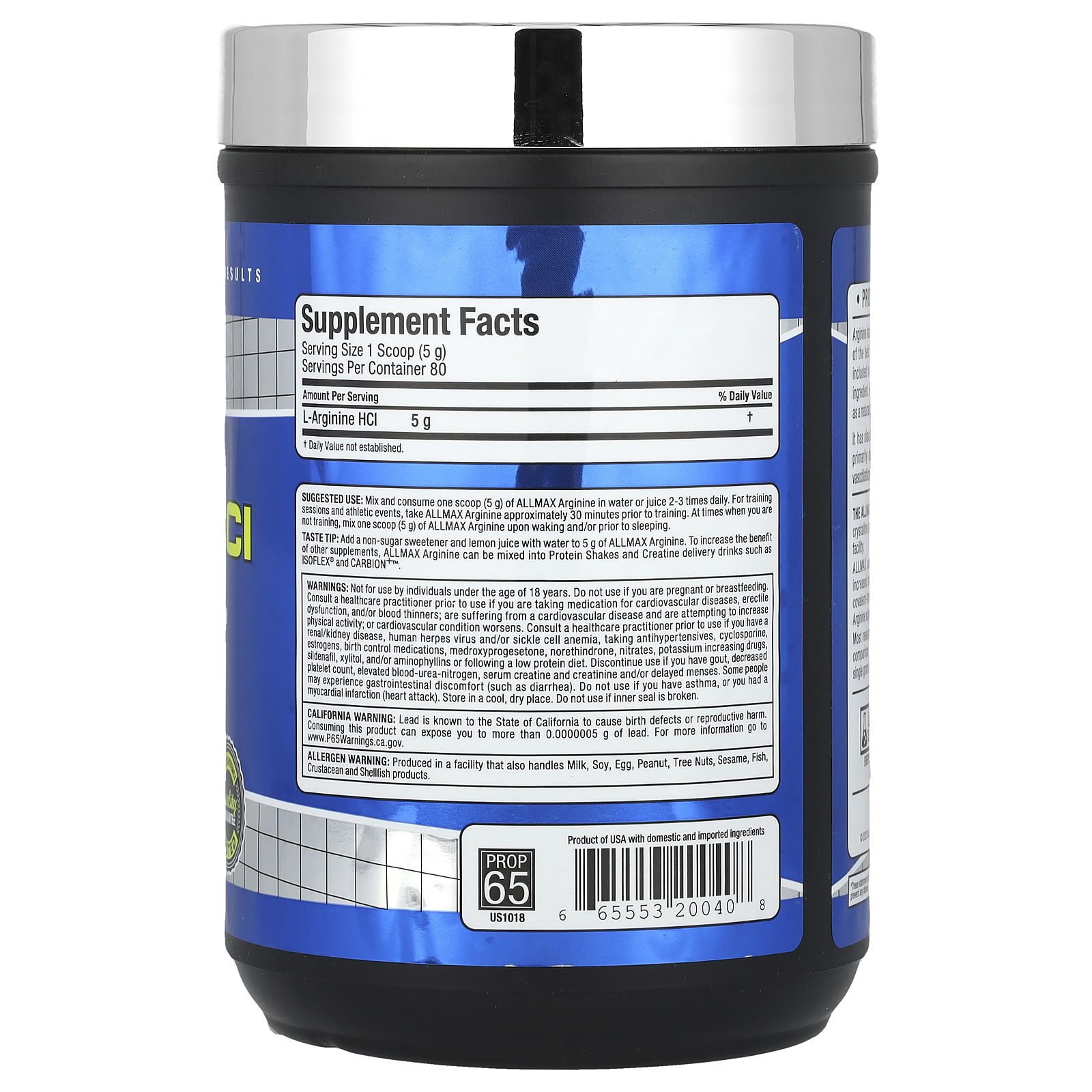 ALLMAX, Essentials, Cloridrato de Arginina, 400 g (14,11 oz) – ALLMAX Suplementos Aminoácidos L-Arginina.