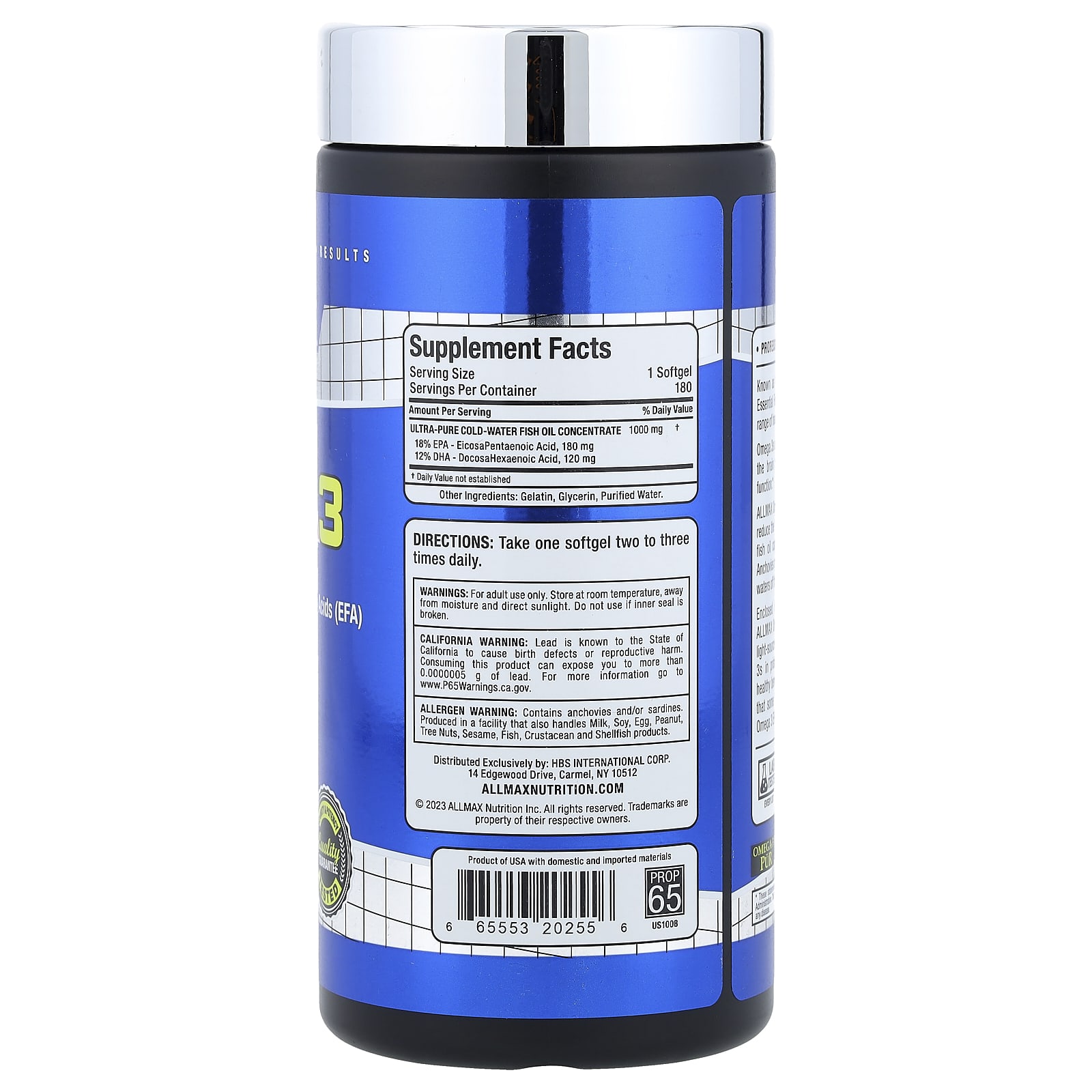 Omega-3™ PÜR — Os EFAs ômega3 da ALLMAX não contêm níveis detectáveis de chumbo, cádmio, arsênico & mercúrio.