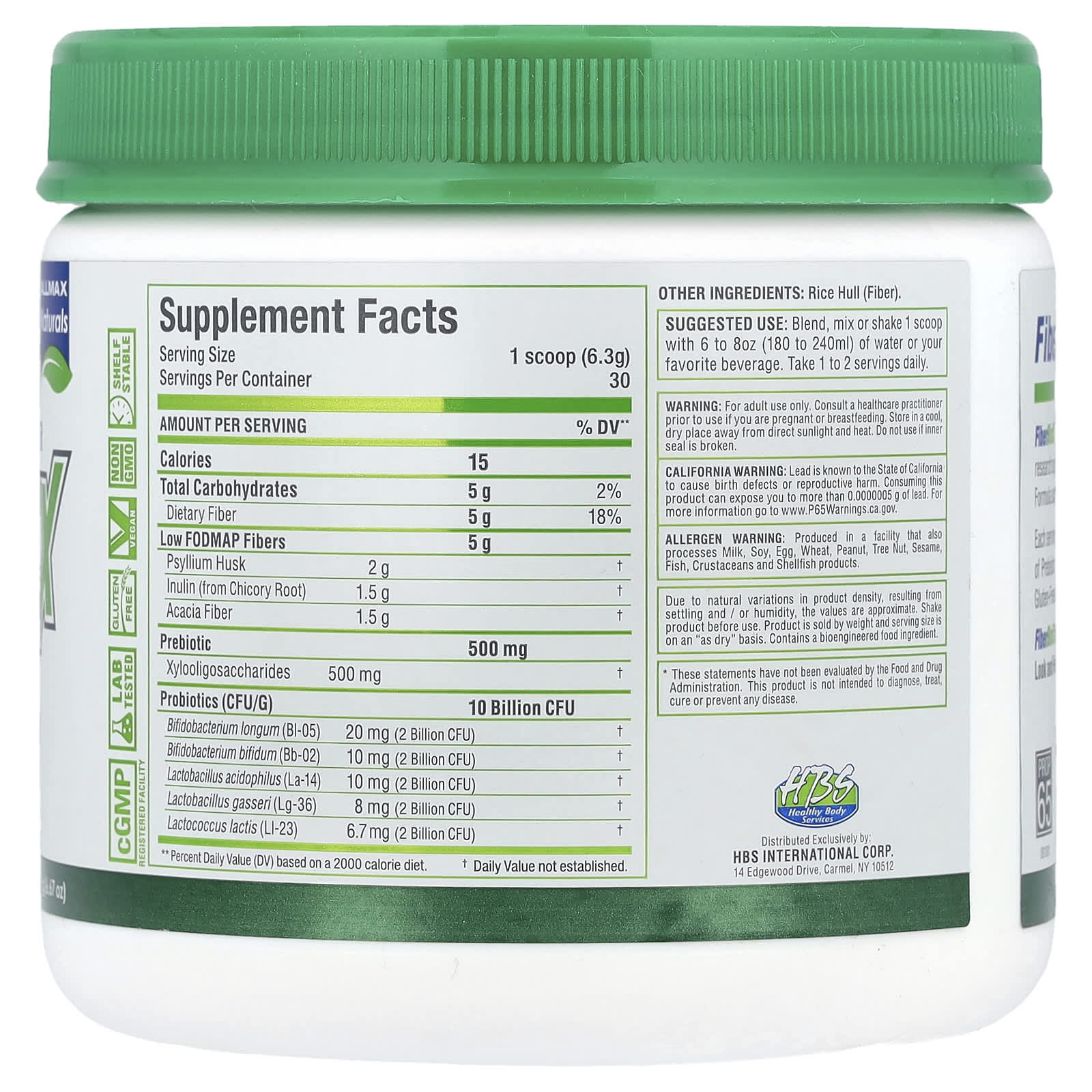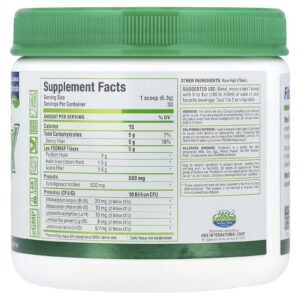 Cada porção fornece ao seu corpo 10 bilhões de UFCs de Probióticos, 500 mg de Prebióticos e 5 g de Fibras com baixo teor de FODMAP. FiberBiotiX não contém Enchimentos, não contém glúten, não é OGM e não contém sabores, cores ou corantes artificiais.