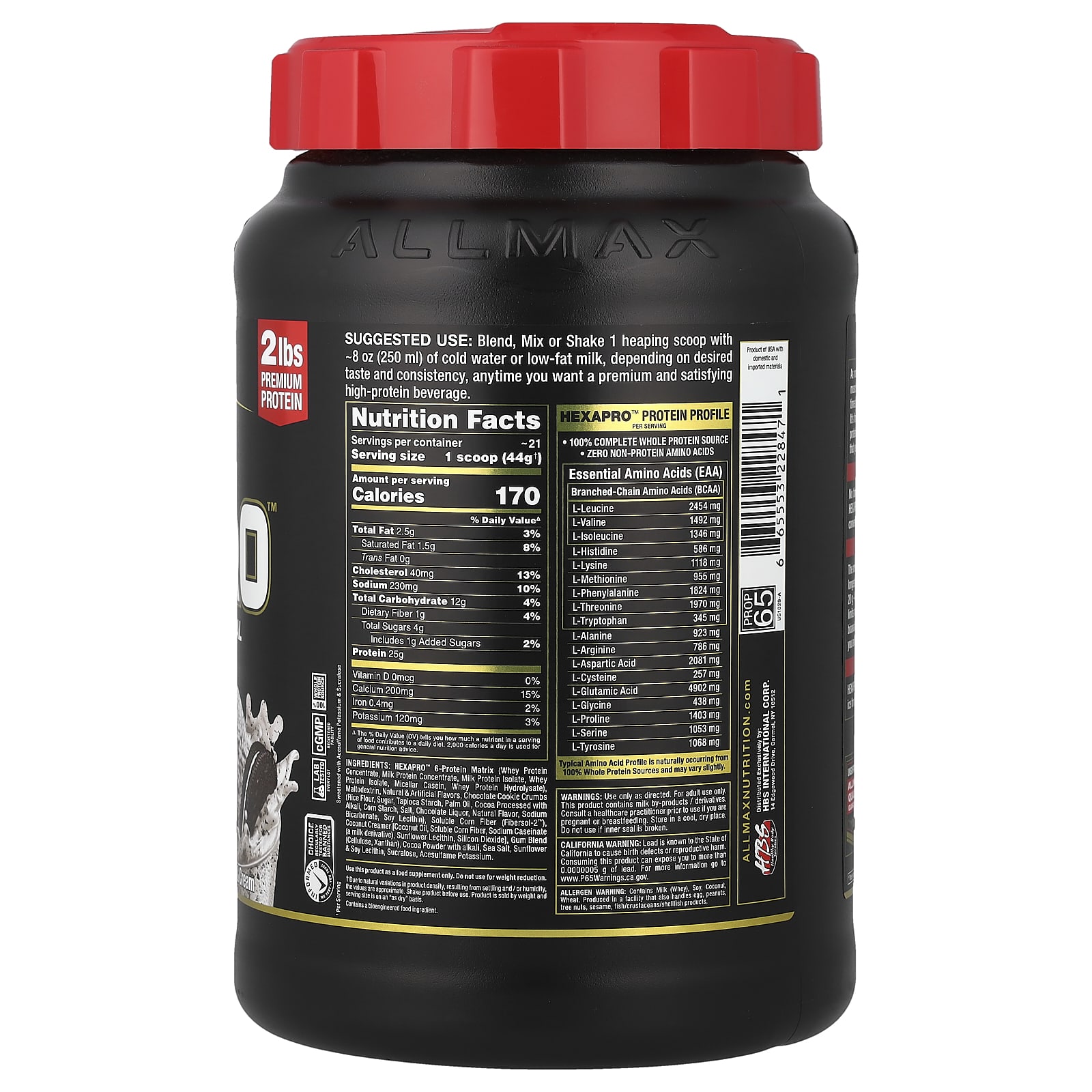 ALLMAX Hexapro™ Refeição Magra com Alto Teor de Proteína Cookies e Creme 907 g (2 lbs) – ALLMAX Nutrição Esportiva Proteína Misturas de Proteínas.