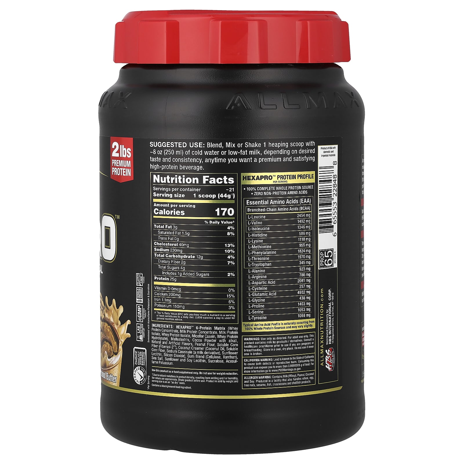 ALLMAX Hexapro™ Refeição Magra com Alto Teor de Proteína Manteiga de Amendoim com Chocolate 907 g (2 lb) – ALLMAX Nutrição Esportiva Proteína Misturas de Proteínas.