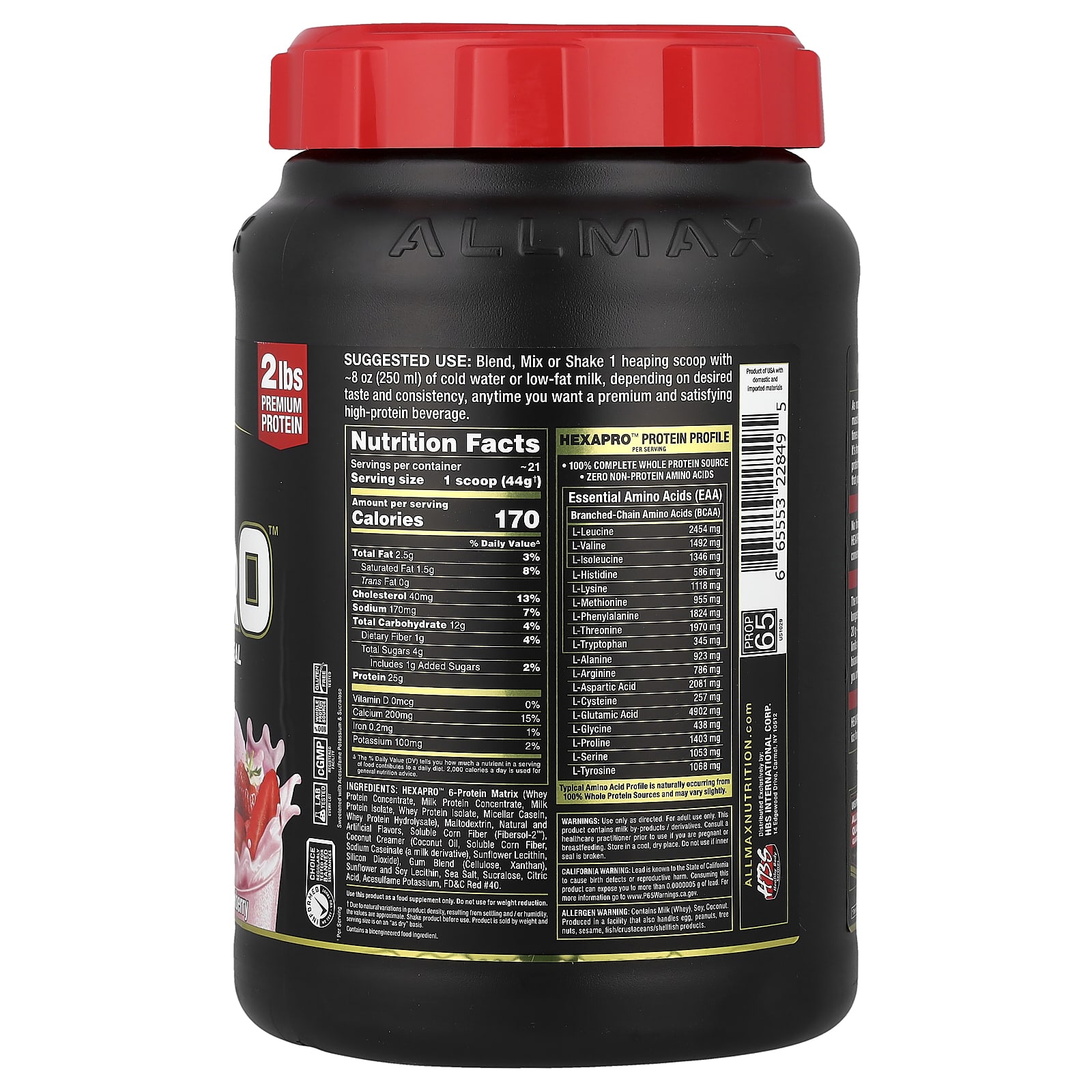 ALLMAX Hexapro™ Refeição Magra com Alto Teor de Proteína Morango 907 g (2 lb) – ALLMAX Nutrição Esportiva Proteína Misturas de Proteínas.