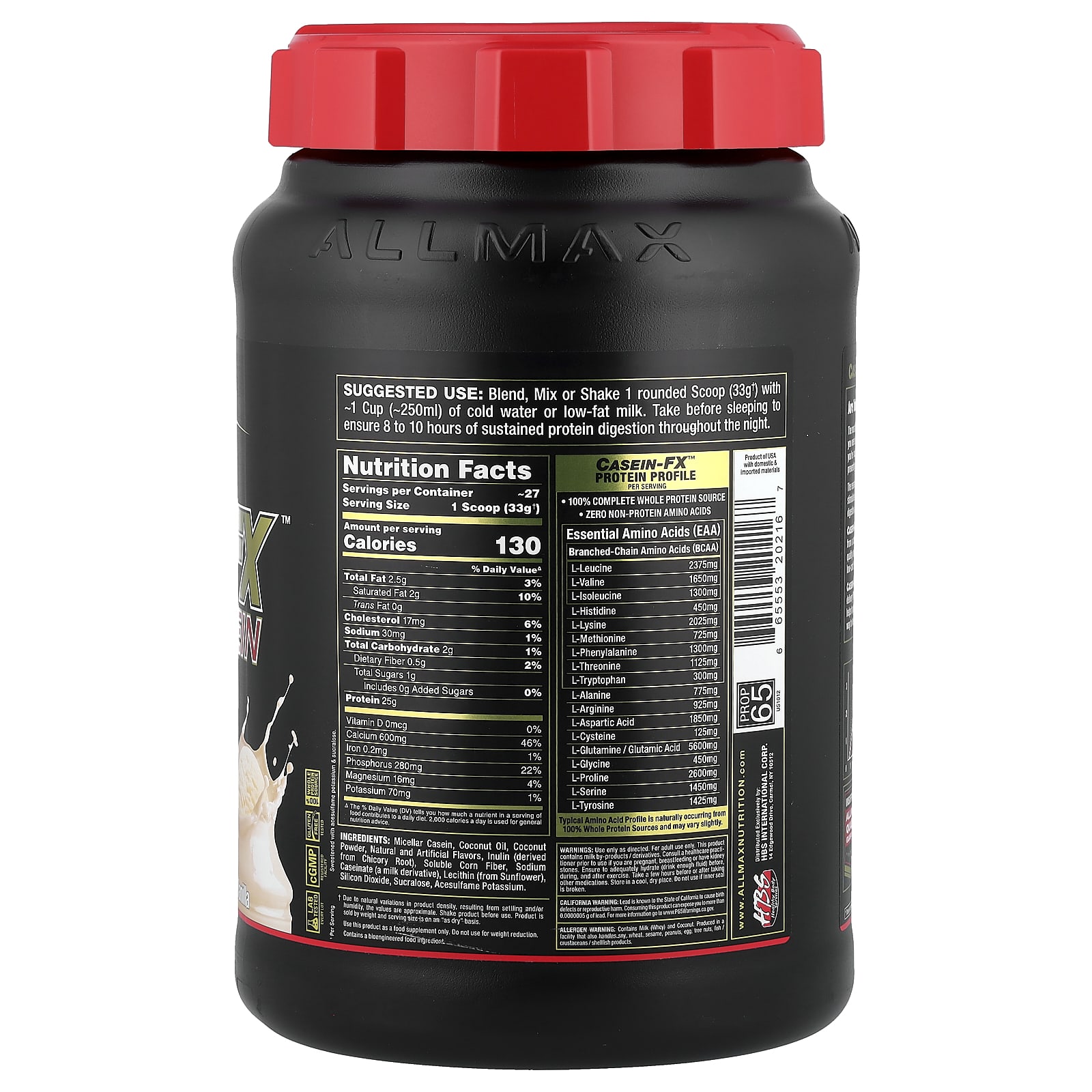 ALLMAX Proteína Casein-FX™ Fonte Micelar 100% Caseína Baunilha 907 g (2 lb) – ALLMAX Nutrição Esportiva Proteína Proteína de Caseína Proteína de Caseína Micelar.