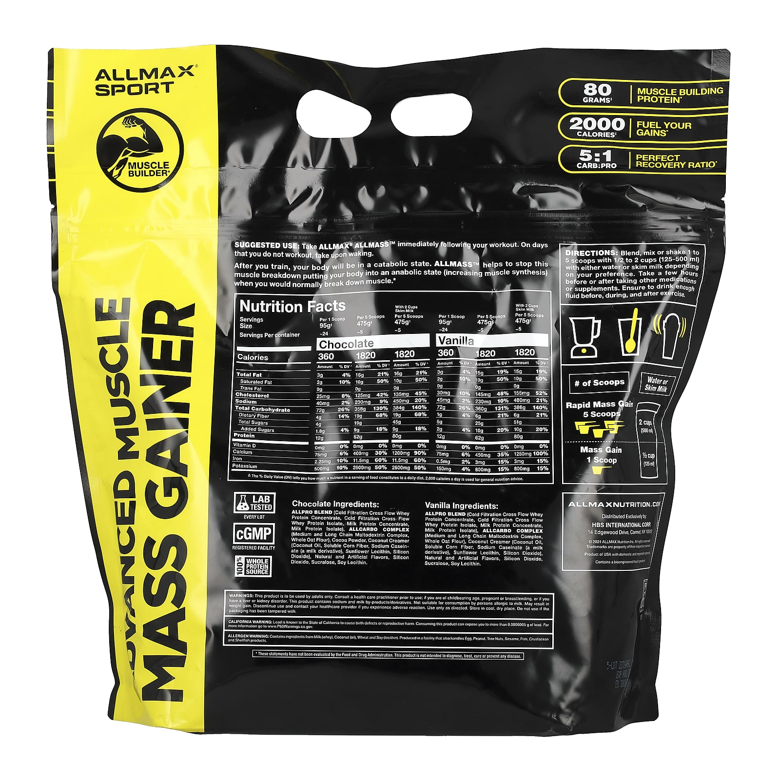 ALLMAX Sport ALLMASS™ Ganho Muscular Avançado Chocolate 227 kg (5 lbs) – ALLMAX Nutrição Esportiva Proteína Ganhadores de Massa Saúde Rico em proteínas.