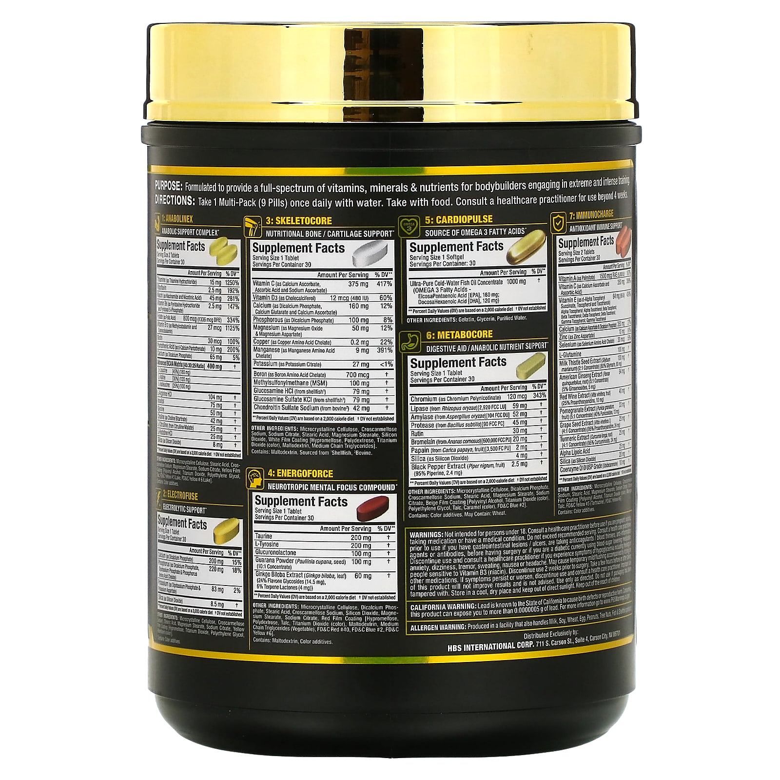 Objetivo: Formulado para fornecer um espectro completo de vitaminas e minerais & nutrientes para fisiculturistas envolvidos em treinos extremos e intensos.