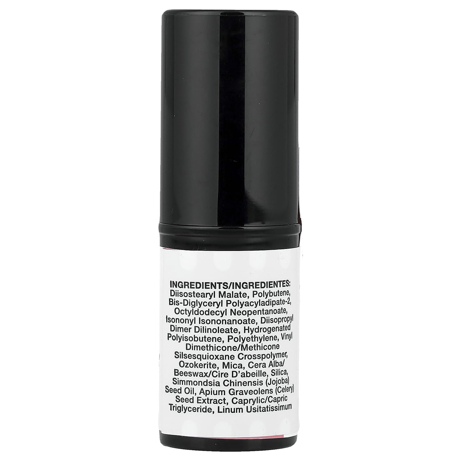 diisostearyl malate, polybutene, bis-diglyceryl polyacyladipate-2, neopentanoato de octildodecil, isononyl isononanoate, diisopropyl dimer dilinoleate, poliisobuteno hidrogenado, polietileno, vinyl dimethicone/methicone silsesquioxane crosspolymer, ozocerita, mica, cera alba/cera de abelha, sílica, óleo da semente de Simmondsia chinensis (jojoba), extrato da semente de Apium graveolens (aipo), caprylic/capric triglyceride, extrato da semente de Linum usitatissimum (linhaça), sililato de sílica, trioleato de sorbitano, acetato de tocoferol, óxidos de ferro (CI 77491), óxidos de ferro (CI 77499), orange 5 (CI 45370), vermelho rubi laca de alumínio (CI 15850), vermelho 7 laca de cálcio (CI 15850), dióxido de titânio (CI 77891), amarelo 5 laca de alumínio (CI 19140).