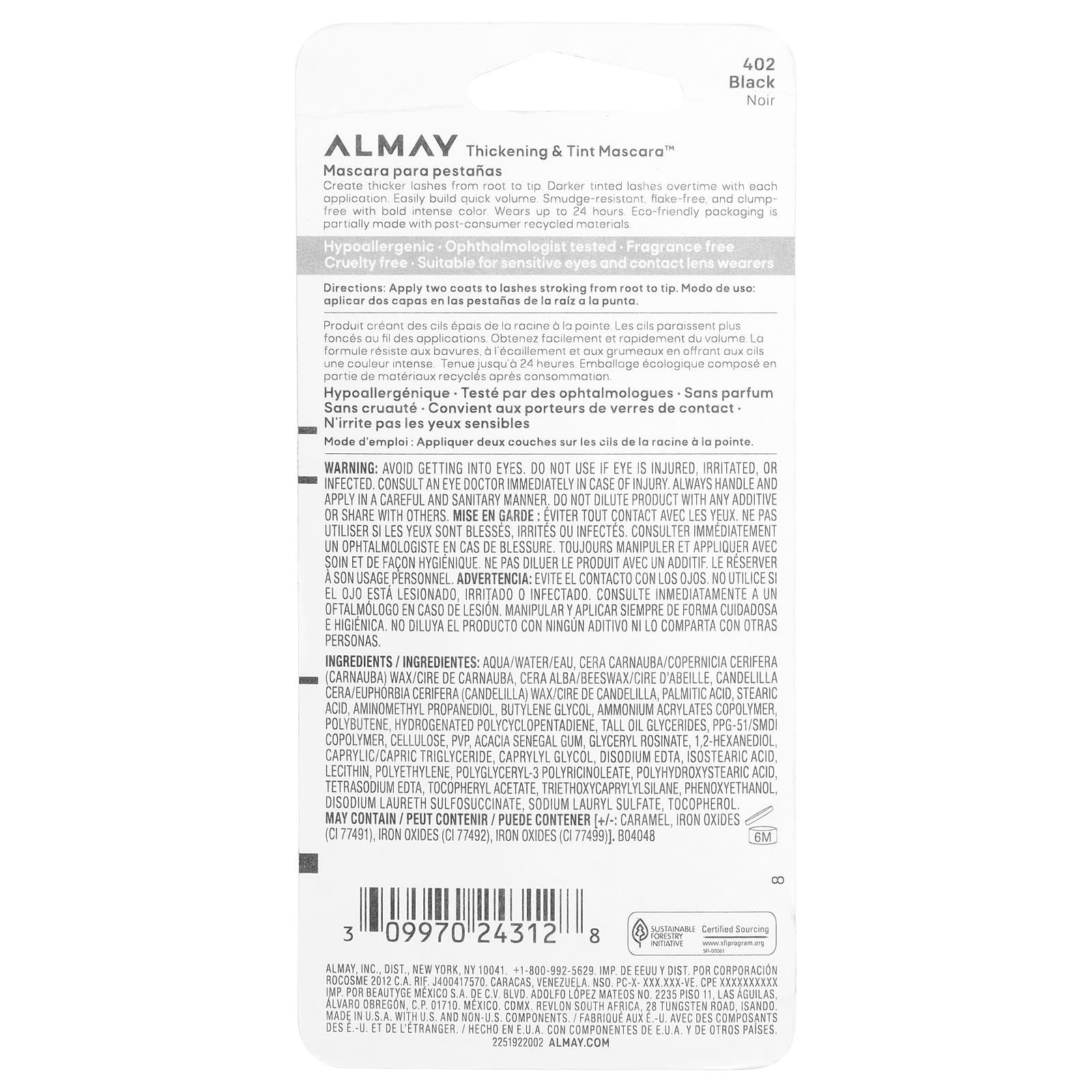 Almay Máscara Espessante e Tingidor de Espessamento™ 402 Preta 83 ml (028 fl oz) – Almay Beleza Maquiagem Olhos Máscara de Cílios.
