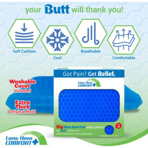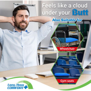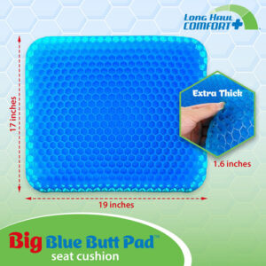 Almofada de assento de gel extra grossa para alívio da pressão por muito tempo sentado — Almofada de bunda azul grande para cadeira — Ergonômica para suporte de cóccix, dores nas costas, quadril e ciática