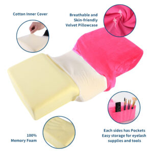 [Conjunto profissional de travesseiros rosa para enxerto de cílios] – – Terno de 2 peças! 1 peça de almofada de extensão de cílios impermeável xPU Almofada de sofá de beleza de acrílico, 1 peça x organizador de prateleiras de acrílico para você colocar cosméticos durante o enxerto de cílios e maquiagem de beleza