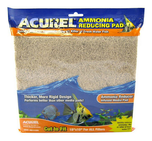 As almofadas redutoras de amônia Acurel ajudam a controlar a amônia, a principal causa de morte de peixes tropicais. A amônia é o resultado da decomposição de resíduos e alimentos em seu aquário, mas pode ser combatida com essas almofadas redutoras de amônia. Absorva a amônia da água rapidamente Reduza o risco de doenças e estresseMelhore a clareza e a qualidade da águaMantenha peixes saudáveis Elimine odores Remova todas as partículas orgânicas, detritos estranhos, medicamentos residuais, excesso de alimentos e resíduos Este produto deve ser usado como medida preventiva e não como remédio para manutenção concentrações de amônia. Use somente em aquários e lagoas de água doce. Dimensões: 10 L x 18 W