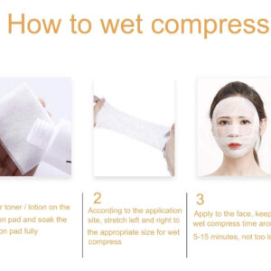 Como molhar o rosto Aplique o banho Etapa 1 Coloque toner/loção na almofada de algodão para embeber totalmente a almofada de algodão. Etapa 2 Estique a almofada de algodão da esquerda para a direita e ajuste-a de acordo com seu tamanho. Etapa 3 Aplique no rosto, mantenha o tempo de compressão úmida em 5 a 15 minutos, não é adequado por muito tempo – 1. Material: feito de algodão premium puro, adequado para a pele de quase todas as pessoas. Material sem fiapos, almofadas de algodão amigáveis para a pele. – 2. Multifuncional: esta almofada de algodão é adequada para hidratar o cuidado da pele, limpar eficazmente a base, o blush, o corretivo e a maquiagem dos olhos, lábios, rosto, esmalte, cuidados com a pele. – 3. Algodão elástico: as almofadas de algodão são muito elásticas e flexíveis, seu tamanho: 4,7* 3,9 polegadas, após o alongamento é de até Máximo de 9,0 polegadas. – 4. Fácil de transportar: leve, perfeita para viagens e uso diário, esta mochila vem em uma prática bolsa que pode ser fechada novamente para facilitar o armazenamento. – 5. O design fino e leve é mais bloqueador de água, mesmo ao toque, bom em absorção de água, economiza água e pode ajudar a remover melhor a maquiagem.