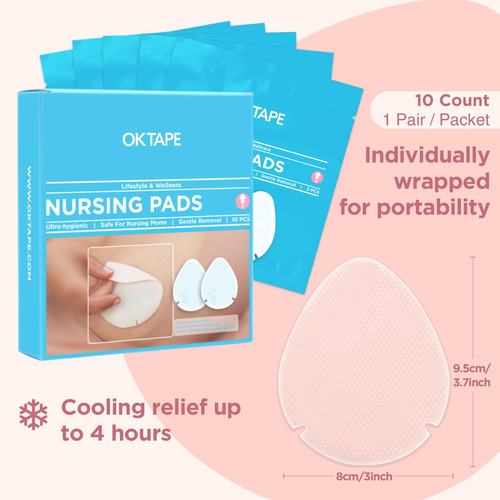 Uma solução para mamilos doloridos ou rachados. Amamentação essencial. As almofadas de peito descartáveis diárias OK TAPE são feitas de hidrogel macio que é absorvido rapidamente e proporciona alívio refrescante de ação rápida e conforto duradouro. Formato exclusivo que se adapta melhor à anatomia e permanece no lugar. – Alívio instantâneo: as almofadas de hidrogel OK TAPE proporcionam alívio ao desconforto de mamilos rachados, doloridos ou doloridos ao entrar em contato – Seguro para bebês: feito de glicerina, água e vitamina E, o gel é suave para peles sensíveis e não deixa resíduos ao ser removido; sem adição de ingredientes de BS ou fragrâncias artificiais – ULTRACONFORTÁVEL: o hidrogel tem um forte efeito refrescante e macio efeito calmante na pele; ajuda a hidratar e permite uma cicatrização mais rápida; o forro de tecido protege os mamilos da fricção do sutiã — EXCLUSIVO FORMATO: Projetado para cobrir melhor o mamilo e a aréola; nossas almofadas de amamentação são fáceis de aplicar e permanecem no lugar; também não são visíveis sob o sutiã ou a roupa – 10 almofadas descartáveis (1 par em um pacote); cada almofada dura até 4 horas; não é recomendável usar se você notar que seus mamilos sangram durante a alimentação