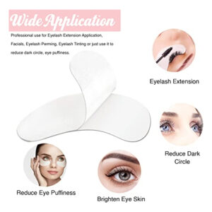 Tamanho do protetor ocular: 7,6 cm x 2,9 cm Um par/pacote; 50 pacotes/pacote. É o produto de beleza profissional para aplicação de extensões de cílios, é uma almofada ideal para cobrir toda a parte inferior dos cílios, o que faz com que a extensão dos cílios funcione de forma mais rápida e limpa.