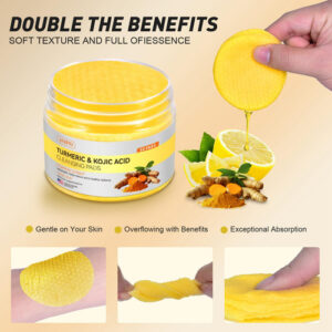 Nosso produto NÃO é cosmético para clarear a pele! Almofadas de limpeza com ácido kójico e açafrão! – Cada almofada é infundida com uma mistura ideal de açafrão e kójic, garantindo uma aplicação precisa e consistente em cada uso. Perfeitas para rotinas diárias de cuidados com a pele ou para uma rápida atualização, essas almofadas melhoram a textura da pele, deixando-a macia, flexível e revitalizada – A esfoliação suave e eficaz fornecida por nossas almofadas de limpeza de açafrão deixa sua pele suave e macia. Com o uso regular, você notará uma visibilidade reduzida dos poros, um brilho jovem e uma tez mais clara. Nossas compressas de limpeza, enriquecidas com kójic e açafrão, penetram profundamente nos poros para remover sujeira, óleo e maquiagem, mantendo a umidade essencial. Eles melhoram a textura da pele, deixando seu rosto macio e flexível. Ideal para uma rotina diária conveniente e eficaz de cuidados com a pele – Feitos com extratos vegetais naturais, incluindo suco de aloe vera, açafrão e kojic, nossos absorventes de limpeza aproveitam o poder desses ingredientes cuidadosamente selecionados para oferecer resultados eficazes no cuidado da pele – Sua satisfação é nossa prioridade. Se você tiver alguma dúvida ou preocupação sobre nossas almofadas de limpeza de kójic e açafrão, entre em contato conosco. Estamos aqui para resolver quaisquer problemas que você possa ter