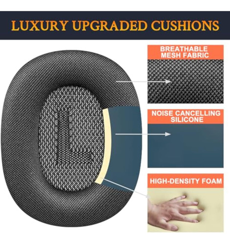 AJUSTE PERFECTO: Nuestras almohadillas de repuesto están fabricadas con el molde original para garantizar un ajuste perfecto a tus auriculares Para Air-Pods Max.
