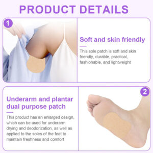 Especificação: Nome: adesivos antitranspirantes para axilas O pacote inclui: 20 unidades x almofadas de suor nas axilas Método de armazenamento: armazenar em local fresco e seco Função do produto: grudar diretamente na pele ou colar na roupa, absorver o suor. Além disso, pode ser usado como uma almofada de suor para os pés. Como usar: 1. Com o teste de adesivo cutâneo: cole o pequeno adesivo de teste cutâneo na parte interna dos braços antes de usar e remova-o após meia hora para confirmar que a pele não tem sintomas alérgicos. 2. Remova a folha adesiva da almofada de suor axilar e cole a almofada embaixo da axila ou da sola do pé. Dica quente: /b> Não aplique se a área da pele ao redor da axila ou da sola do pé estiver inflamada ou quebrada. – Diga adeus às manchas de suor: o uso de materiais absorventes de água pode absorver melhor o suor, evitar que suas roupas se molhem e evitar constrangimentos. É adequado para homens e mulheres que suam muito no verão. – Fácil e conveniente: o bastão de suor tem um adesivo forte, ele permanecerá no lugar. Não importa como você entenda, ele não mudará nem cairá. Você pode participar de atividades esportivas com segurança no verão. – Material de segurança: cole o pequeno adesivo de teste cutâneo na parte interna dos braços antes de usar e remova-o após meia hora para confirmar que a pele não apresenta sintomas alérgicos. Em seguida, remova a folha adesiva da almofada de suor axilar e cole a almofada embaixo da sola do pé nas axilas. – Limpe suas roupas: quando você está se exercitando, as almofadas de suor nas axilas podem reduzir o suor debaixo dos braços ao encharcar suas roupas. Bom desempenho de absorção para evitar estragar suas roupas bonitas em público e fazer você se sentir envergonhado. – Amplamente utilizado: o adesivo de suor pode não apenas absorver o suor, mas também grudar nas solas dos sapatos para manter os pés secos e inodoros. Adequado para entrevista de emprego, falar em público ou talvez uma reunião, negociações de emprego, compromissos íntimos, jantares. Adequado para homens e mulheres.