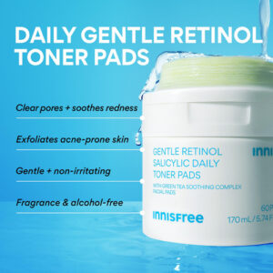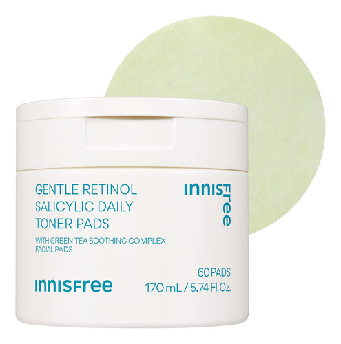 Almofadas de toner salicílico de retinol suave diário innisfree, máscaras coreanas para cuidados com a pele propensa a acne Tônicos