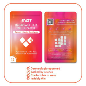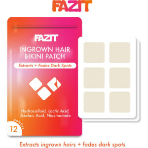 Adesivos de cabelo encravados Fazit Bikini — Extrator de pelos encravados e suavizador e desbotante de hiperpigmentação — Hidrocolóide com ingredientes ativos. Além de absorver pus, oleosidade e extrair o cabelo, o adesivo ajuda a clarear e esfoliar a pele, deixando uma tez mais lisa. – SOLUÇÃO DEFINITIVA – A depilação de biquíni da Fazit oferece a solução definitiva para combater os pelos encravados e a hiperpigmentação ao longo da linha do biquíni. Se você está enfrentando pêlos encravados feios ou lidando com uma hiperpigmentação persistente, esses adesivos foram projetados para resolver esses problemas de forma eficaz. Ao aderir à área afetada, esse removedor de pelos encravados trabalha diligentemente para extrair pelos encravados, absorvendo qualquer pus acumulado e óleo de sebo. – BENEFÍCIOS – Nossa depilação na área do biquíni oferece vários benefícios que vão além de simplesmente tratar os pelos encravados. Em primeiro lugar, este tratamento de pêlos encravados de biquíni se destaca na extração de pelos encravados, fornecendo uma solução rápida e eficiente para esse problema comum. Ao aderir suavemente à pele, eles criam um ambiente ideal para que os pelos encravados sejam liberados naturalmente, reduzindo o risco de mais irritações e infecções. – FÁCIL DE USAR – Este removedor de pelos para mulheres é fácil de usar. Basta limpar e secar a área do biquíni, aplicar o adesivo na área desejada e deixá-lo por 6-8 horas. Depois, retire suavemente o adesivo para revelar o cabelo extraído e reduzir a inflamação. Para pêlos encravados profundos, podem ser necessárias 2-3 aplicações. – INGREDIENTES PREMIUM – Este kit de depilação encravada é feito com ingredientes premium. Eles contêm hidrocolóides aprovados por dermatologistas, juntamente com ácido azelaico, niacinamida, vitamina C, ácido lático e glicerina. Esses ingredientes de alta qualidade da nossa ferramenta extratora de pelos encravados trabalham juntos para combater eficazmente os pelos encravados, iluminar a pele e reduzir a hiperpigmentação. – RESULTADOS CLINICAMENTE COMPROVADOS – Este apagador de cabelo para mulheres é apoiado por evidências clínicas. Os ingredientes ativos, incluindo ácido azelaico, niacinamida, vitamina C e ácido lático, foram clinicamente comprovados para reduzir a descoloração, atenuar a hiperpigmentação e esfoliar a pele. O hidrocolóide na depilação da linha do biquíni também foi testado e aprovado por dermatologistas por sua eficácia na extração de pelos encravados e na absorção de sebo, óleo e pus, resultando em uma textura mais suave.