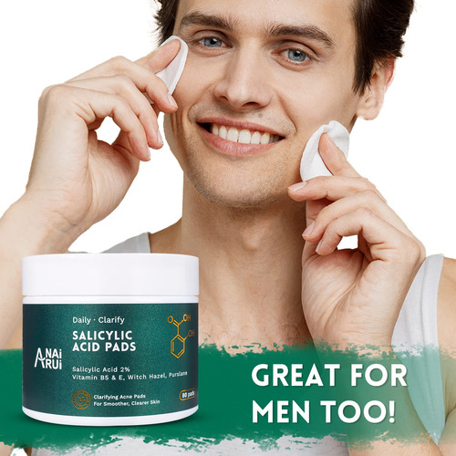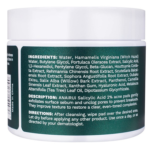 As almofadas para acne com ácido salicílico AnaiRui 2% esfoliam suavemente o sebo da superfície e desobstruem os poros para evitar erupções cutâneas. Eles melhoram a textura para restaurar uma tez clara e uniforme. Instruções: 1. Faça um pequeno teste atrás da orelha ou sob o queixo antes de usá-lo no rosto. 2. Lave o rosto primeiro e passe a almofada sobre a área desejada, evitando a área sob os olhos. 3. Espere 15 minutos e depois enxágue o rosto. Deixe secar antes de aplicar qualquer outro produto. Use uma vez ao dia ou conforme indicado pelo seu dermatologista. Continue com protetor solar SPF 30+ no verão antes de sair. Aviso: Somente para uso externo. Interrompa o uso se ocorrer vermelhidão ou irritação. Evite o contato direto com os olhos. Armazene em local fresco e escuro. Um teste adesivo é recomendado antes do uso. – Almofadas de tratamento da acne – Nossas almofadas faciais com 2% de ácido salicílico são uma poderosa almofada de limpeza facial usada para reduzir a produção de óleo e minimizar os poros, limpar e prevenir futuras erupções cutâneas, reduzir a inflamação e melhorar o tom da pele. Ideal para prevenir cravos e espinhas leves de acne. Adequado para adolescentes, mulheres e homens. – Lenços de acne texturizados de nível profissional para rosto – As almofadas de limpeza facial macias com textura profissional ANAIRUI 80 são especialmente formuladas para peles com tendência a acne, ajudam a limpar profundamente e desobstruir os poros, deixando sua pele mais macia e suave. – Ingredientes poderosos – Este lenço infusor de ácido salicílico com vitamina B5 e E, hamamélis e beldroegas, ajudam a acalmar a pele e fechar os poros, reduzir a inflamação na pele e estimular o reparo celular, o que diminui a aparência de cicatrizes e enruga e também mantém a pele macia, suave e hidratante. – SEGURO E FÁCIL DE USAR — 1. Faça um pequeno teste de contato atrás da orelha ou embaixo do queixo antes de usá-lo no rosto. 2. Lave o rosto primeiro e passe a almofada sobre a área desejada, evite a área sob os olhos. 3. Espere 15 minutos e depois enxágue o rosto. – PARA MULHERES E HOMENS – Nossas almofadas faciais com 2% de ácido salicílico são um peeling facial químico suave, ideal para mulheres e homens, sem fragrância, sem parabenos e sem penugem. Antioxidantes naturais com ativos comprovados cientificamente.