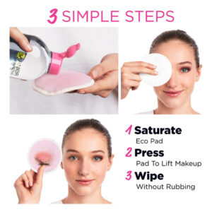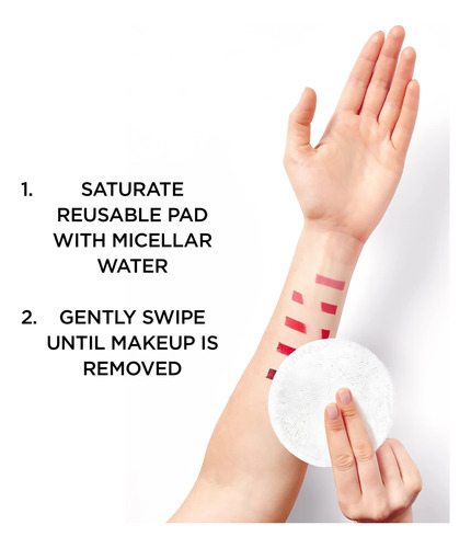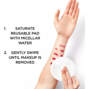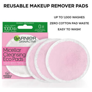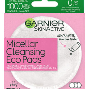 Almofadas de microfibra ultramacias e reutilizáveis que são ativadas com a água de limpeza micelar Garnier para remover completamente a maquiagem e limpar a pele sem esfregar com força higiênicas Duram até 1.000 lavagens 0 resíduos de algodão Reduza o desperdício diário desnecessário de lenços umedecidos e diga adeus ao algodão rodadas. As almofadas ecológicas de limpeza micelar Garnier duram até 1.000 lavagens e não desperdiçam algodão.