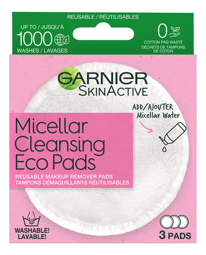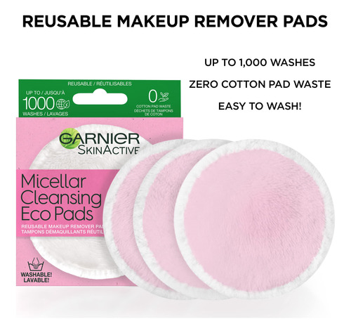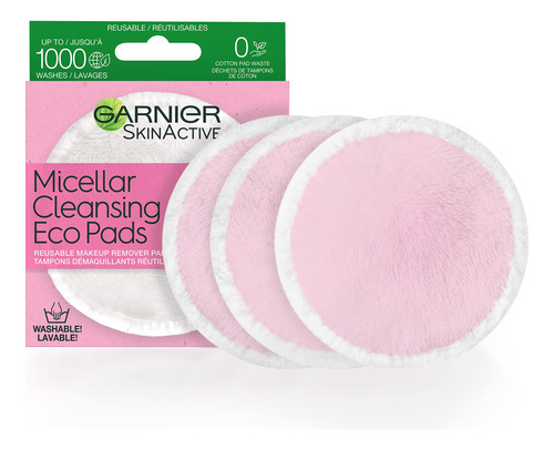 Almofadas ecológicas de limpeza micelar Garnier SkinActive, reutilizáveis, 3 almofadas de microfibra ultramacias, 1 unidade (a embalagem pode variar)