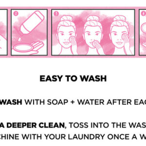 – Fácil de lavar – Lavar à mão com água e sabão após cada uso – Para uma limpeza mais profunda, jogue na máquina de lavar com a roupa uma vez por semana