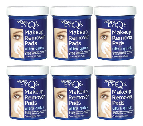 Almofadas removedoras ultrarrápidas de maquiagem para olhos Andrea Eye Q, 65 unidades (pacote com 6) — Removem maquiagem de longa duração e impermeável para os olhos — Contém aloe vera e extratos botânicos — Calmantes — Eficazes