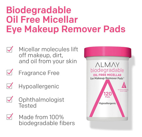 – Produto: Almay Biodegradable Makeup Remover Pads, Micellar Gentle,…