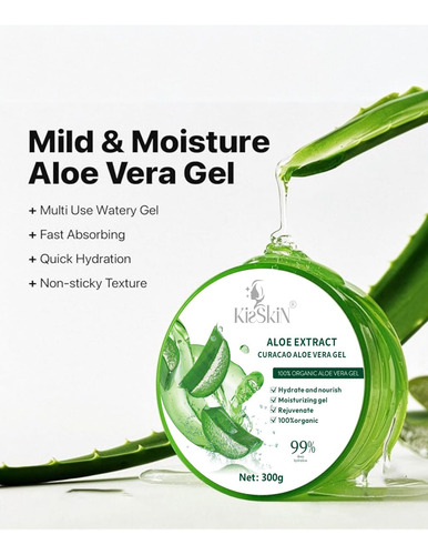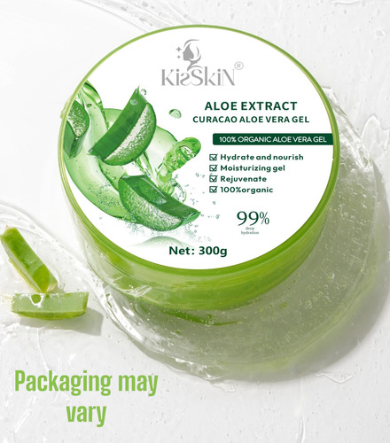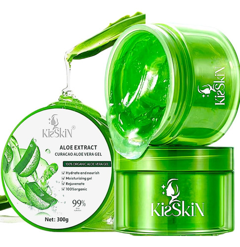 Gel de Aloe Vera Kisskin: o gel de aloe vera 100% é de rápida absorção e é para todos os tipos de pele Nosso gel puro é ótimo para rosto, corpo, cabelo e pele O gel de aloe vera Kisskin não tem álcool e não tem pigmentos. Gel de dia e noite sem perfume – Gel de aloe vera