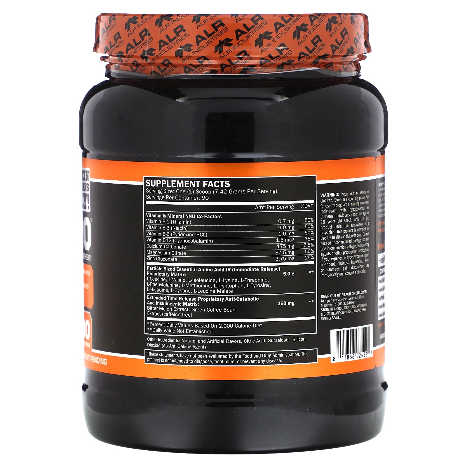 | Aminoácido Essencial do Tamanho de Partícula (Liberação Imediata) Matriz Proprietária: L-Leucina, L-Valina, L-Isoleucina, L-Lisina, L-Treonina, L-Fenilalanina, L-Metionina, L-Triptofano, L-Tirosina, L-Histidina, L-Cisteína, Malato de L-Leucina |
