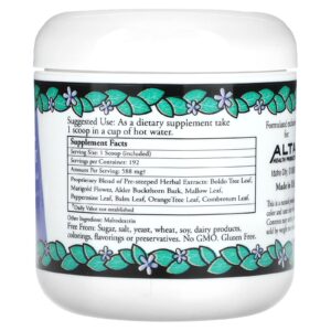 Uma mistura tradicional de oito extratos de ervas que foram pré-embebidos para uma assimilação ideal. Juntas, essas ervas ajudam a nutrir o sistema digestivo, ajudam a manter o sistema eliminatório e ajudam a fornecer suporte nutricional para o fígado.
