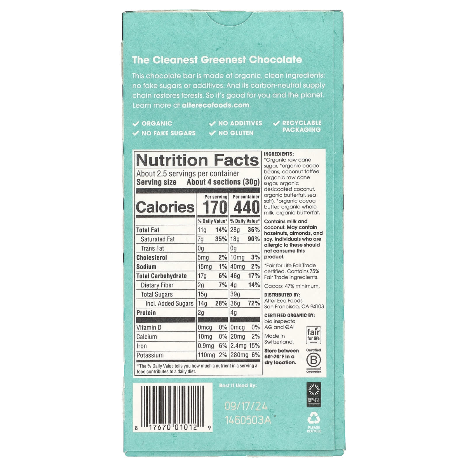 Alter Eco Barra de Chocolate Amargo Orgânico Caramelo de Coco 47% Cacau 80 g (282 oz) – Alter Eco Alimentos Chocolate e doces Chocolate Chocolate Amargo.