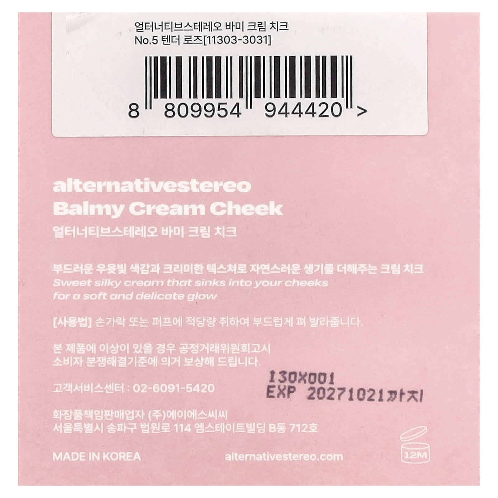 alternativestereo Balmy Cream Cheek N.º 5 Tender Rose 25 g (008 oz) – alternativestereo Beleza Maquiagem Rosto Blush Blushes K-Beauty.