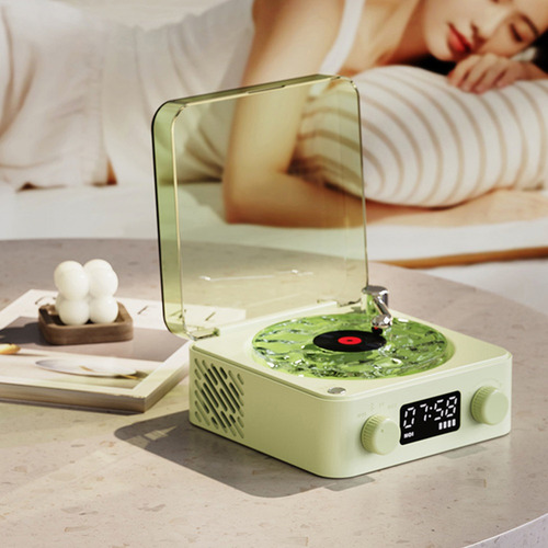 Toca-discos de vinil vintage: Os toca-discos de vinil possuem alto-falantes integrados para que você possa desfrutar de um som rico e envolvente que dá vida à sua música.
