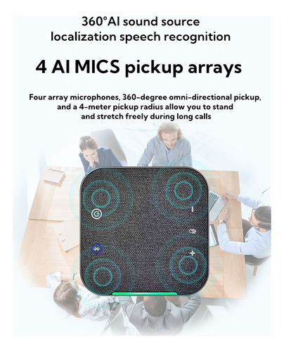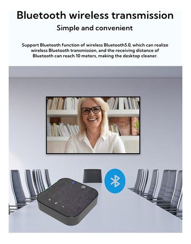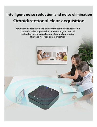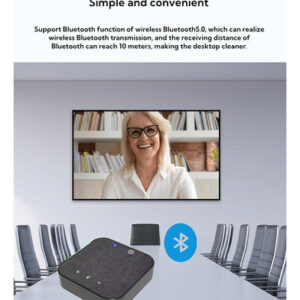 Microfone omnidirecional sem fio M35W, este produto possui conexão sem fio e conexão por cabo USB a outros terminais de comunicação, o que é conveniente para conectar e. O raio de captação do microfone pode chegar a 4 metros, adequado para salas de conferências pequenas de 30 metros quadrados e escritório pessoal.