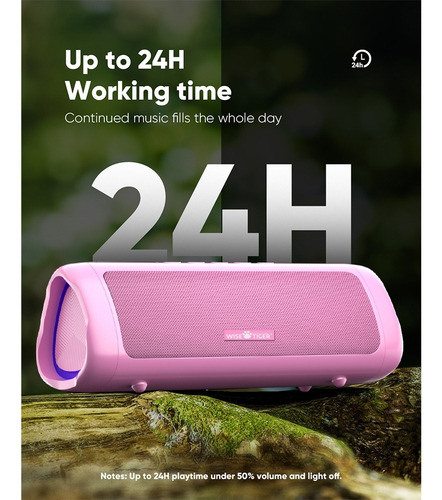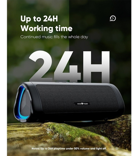 WISETIGER alto-falante portátil com bluetooth Som estéreo alto-falante sem fio com bluetooth5.3 Tempo de reprodução de 24 horas Luz RGB Entrada AUX Carga típica