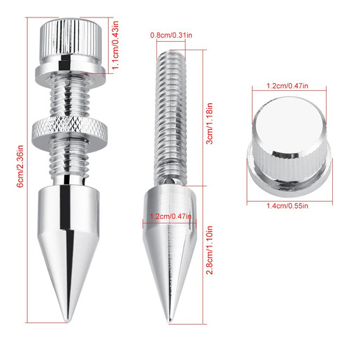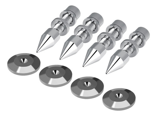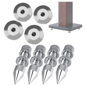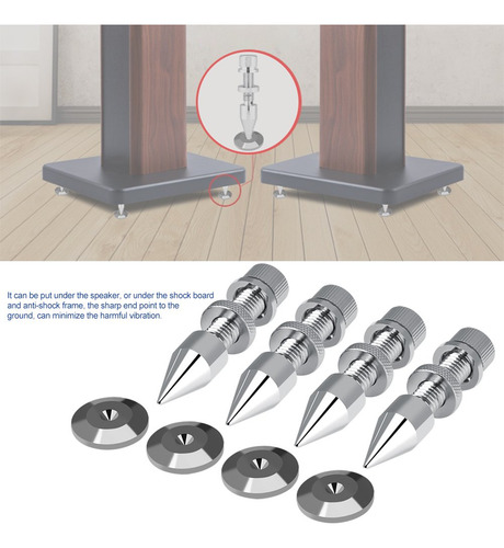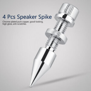 Especificações: Cor: prata Material: cobre Processo: cromado Tamanho: Aprox. 11 x 60 mm/0,43 * 2,36 pol. Peso da embalagem: cerca de 207 g O pacote inclui: 4 x Speaker Spike 4 x Base Pad (não incluindo alto-falante). – Use cobre puro cromado, de alta resistência e durável. A base de choque do alto-falante é usada entre o pico e o solo, para minimizar a vibração nociva. Para pés de alto-falante e picos – Pode ser colocado embaixo do alto-falante e ajudar a minimizar a vibração prejudicial. Adequado para alto-falante, amplificador, CD DVD player, gravador de toca-discos, chassi, instrumento, etc. para pontas de carpete do alto-falante 3/8-16 – Projetado com porca de balanceamento de ajuste fino de altura. Elimine a poluição entre o solo e o alto-falante, obtenha o efeito sonoro natural puro. Reduza o estrondo, proteja a superfície do piso contra arranhões. Para pontas de carpete do alto-falante 3/8-16 – Pode ser usado para alto-falantes HiFi ou estrutura de alto-falante. Absorve vibrações e obtenha maior qualidade de prazer auditivo, melhore a clareza do som, a imagem estéreo e a resposta de graves. pés e espigões – o pico do alto-falante é de alto desempenho e de qualidade premium, mas se houver algum problema de qualidade com nosso produto por favor, não hesite em nos contatar, nós lhe forneceremos o atendimento ao cliente mais amigável para pés e espigões