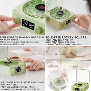 Inspirado na elegância atemporal da estética vintage, o alto-falante Bluetooth Vintage Vinyl Record Player combina charme vintage com funcionalidade moderna.