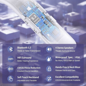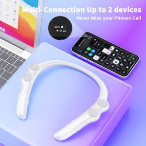 Um corpo leve de 85g que faz você se sentir menos cansado. A parte central do alto-falante é feita de material de silicone, que é macio e se ajusta suavemente ao pescoço.