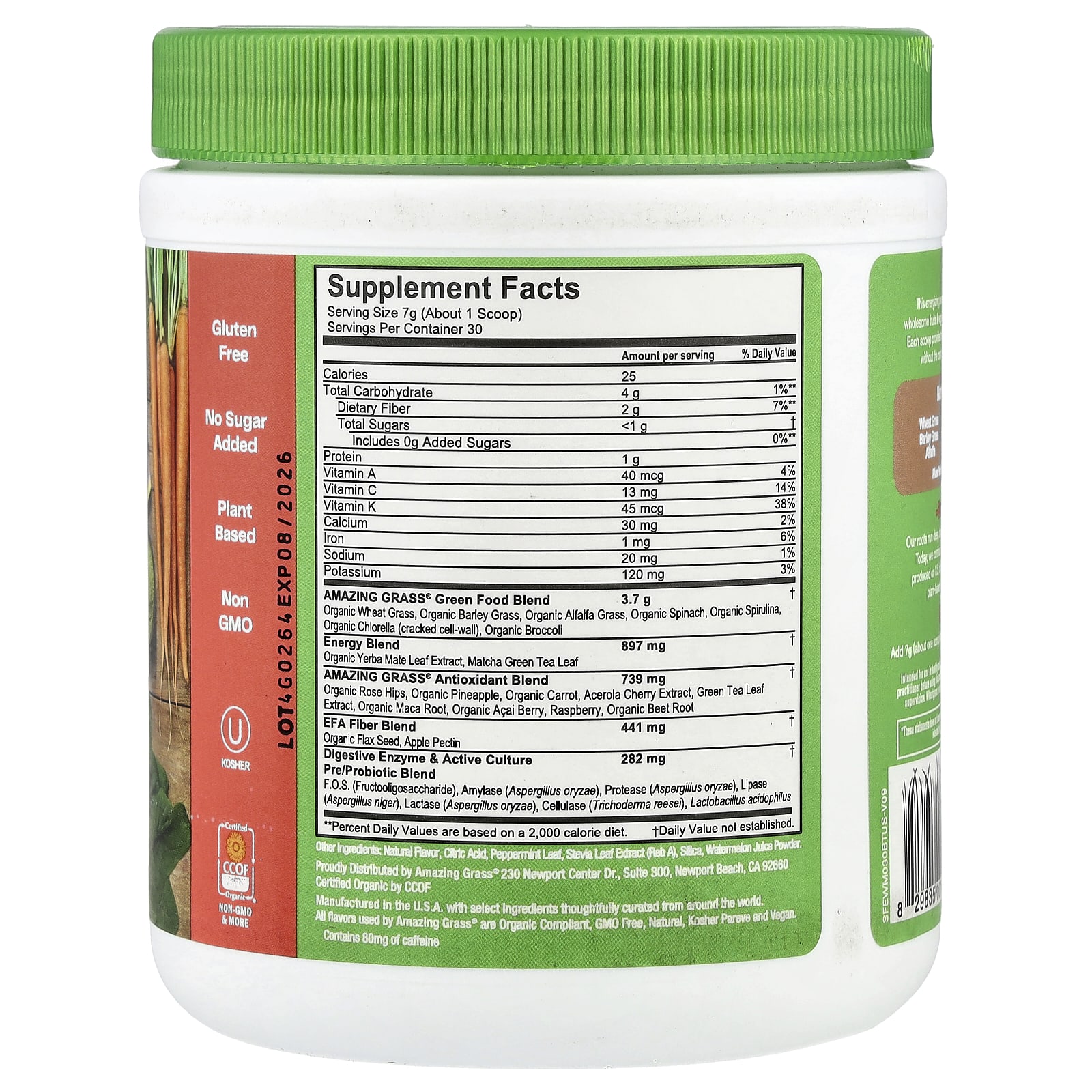 Amazing Grass Green Superfood Energia Melancia 74 oz (210 g) – Amazing Grass Suplementos Superalimentos Misturas de Verduras e Superalimentos Saúde Energia Fórmulas Energéticas.