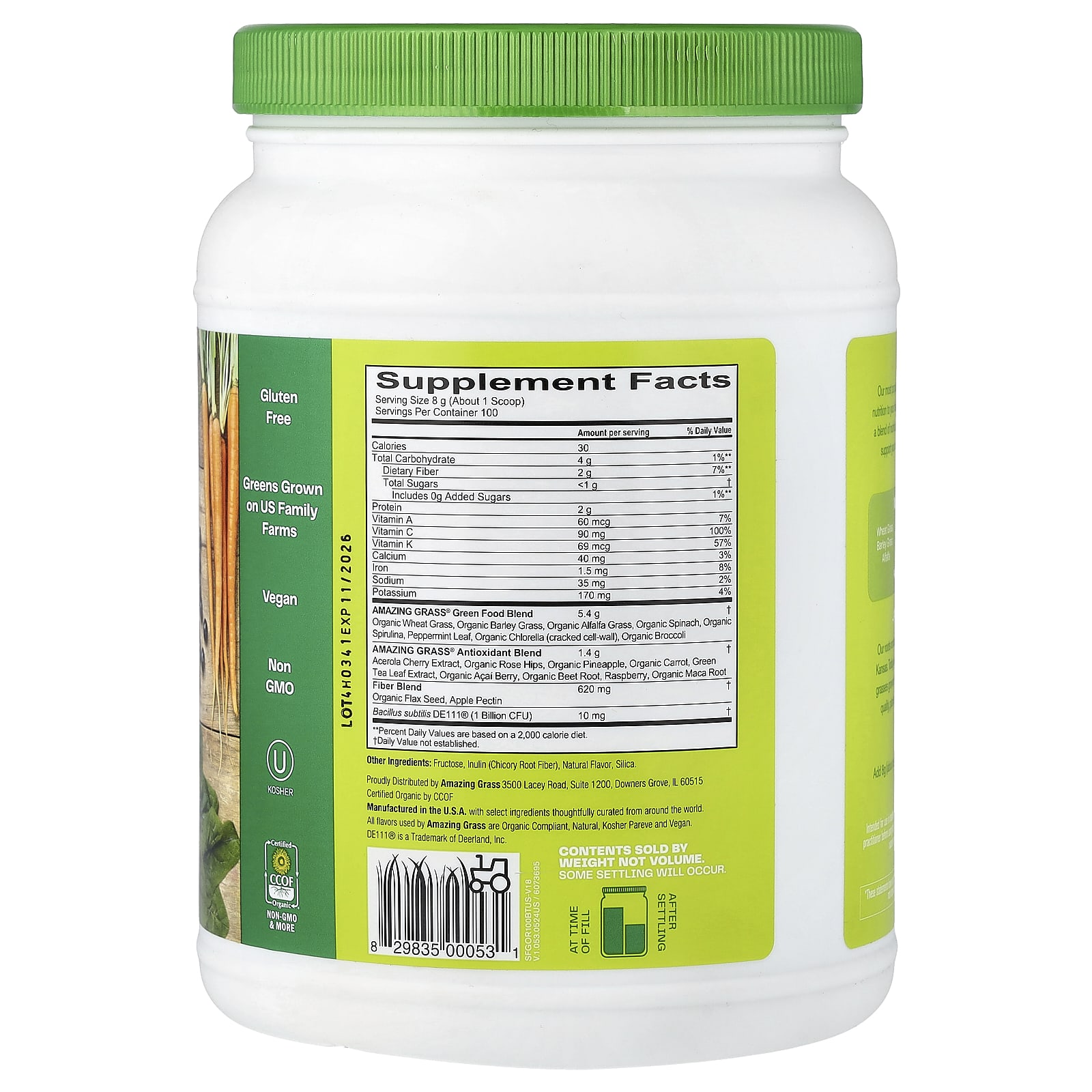 | Mistura Antioxidante Amazing Grass®: Extrato de Acerola, Rosa-Mosqueta Orgânica, Abacaxi Orgânico, Cenoura Orgânica, Extrato da Folha de Chá Verde, Açaí Orgânico, Beterraba Orgânica, Framboesa, Raiz de Maca-Peruana Orgânica |