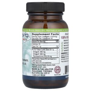 Amazing Herbs Black Seed™ 90 Cápsulas Softgel – Amazing Herbs Suplementos Ervas Cominho Preto.